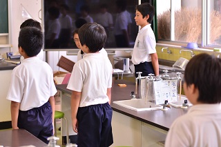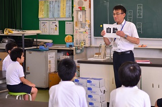 今日の学校の様子です。朝一番に夏の生き物を観察しています。