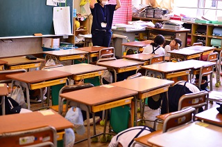 今日は地震に対するショート訓練「いま、ゆれたらどうする!?」が行われました。