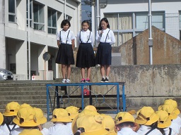 3日間の短い秋休みが終わり、後期が始まりました。後期始業式が行われ、3年生と6年生の代表が、後期の目標を発表しました。前期を振り返り、後期では一つ上の自分を目指すために頑張りたいことを挙げていました。保健担当からは、“お・は・な”について話がありました。安全で衛生的に健康な生活を送るために、“お”「おちついた行動しよう」、“は”「ハンカチを持ってこよう」、“な”「なおそうむし歯、歯医者さんで」を守りましょう。