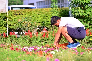 朝から花壇の整備をする6年生の姿が見られました。