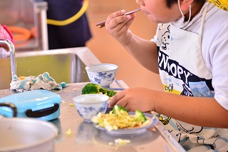 家庭科で調理実習をしているクラスもありました。