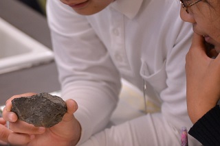 6年生が化石の観察をしていました。いくつ見つけたかな?