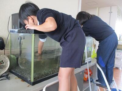 ご来校の際は、きれいになった水槽で元気に泳ぐ金魚たちをご覧ください。