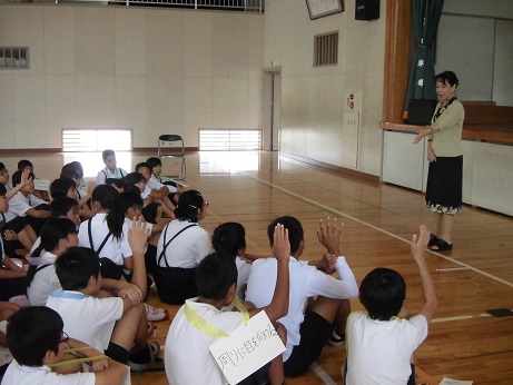 について講演して頂きました。「英語は世界中のみんなと話しができる。」「世界中、みんな同じ人間。」など英語や世界のことを楽しくお話し下さいました。最後に「チャレンジ」することの大切さを子どもたちに教えて下さいました。阿部フォード恵子先生、ありがとうございました。