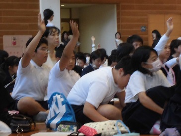 第37回部落差別をはじめあらゆる差別をなくす大津町児童生徒集会に、大津小学校から88名の児童が参加しました。大津小の子どもたちは各学校の取り組みの発表を聞いて、感じたことを自分の経験と重ねて返しの言葉をおくりました。この集会は、いじめや差別、身の周りのおかしなことに気づき、なくしていくための力をつけるためにあります。参加して感じたことを学級にも伝えましょう。