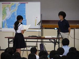 平和集会をしました。講話を聞き平和についてしっかりと考えていきました。