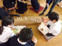 音楽室から、いつもとは少し違った音色が聞こえてきました。のぞいてみると、4年生が箏(そう)を奏でていました。箏(そう)は琴とよばれることが多い和楽器です。(実際には、箏と琴にはちがいがあるとのことです)4年生の音楽の「鑑賞」領域では、「和楽器の音楽を含めた我が国の音楽,郷土の音楽,諸外国に伝わる民謡など生活との関わりを捉えやすい音楽,劇の音楽,人々に長く親しまれている音楽など,いろいろな種類の曲」を教材として扱うことが示されています。