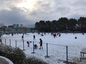 学校の運動場も真っ白に雪化粧。