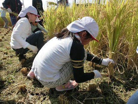 この日は絶好の稲刈り日和で、子どもたちは楽しみながら稲刈りを行うことができました。実際にコンバインが稲を刈っている様子を見ながら子どもたちからは「すごーい。」「速い。」などの感想が聞かれました。コンバインで一通り稲を刈った後、いよいよ田んぼの中へ。のこ鎌を上手に使いながら手際よく作業を進めることができました。稲刈りを終え、子どもたちは坂本さんやお世話になった皆さんに感謝の気持ちを伝えました。これからも感謝の気持ちを持ち続け、お米を美味しく頂きたいと思っています。