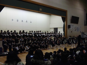 後期前半が終了し、明日から冬休みに入ります。全校集会では、後期に入ってからの表彰や校長先生の講話、生徒指導部から冬休みのくらしについての話がありました。2週間ほどの短い冬休みですが、病気やケガをすることなく、元気な姿と笑顔で1月7日(木)に登校しましょう。