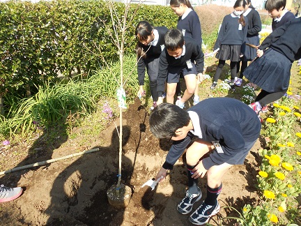 ハナミズキの苗木を植えました(卒業記念樹)