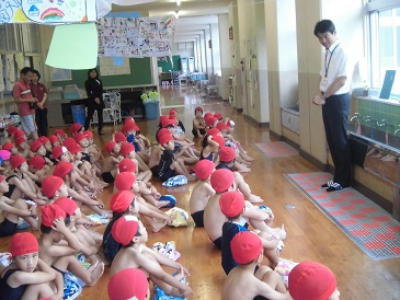 16日(木)と17日(金)は大津小学校のプール開きでした。昨日は小雨が降る中、1年生の子どもたちは楽しく水浴びをしました。今日の天気は曇りで、気持ちよく泳ぐことができたようです。水泳の授業は冷たくて気持ちがいいので、楽しみにしている子が多いです。