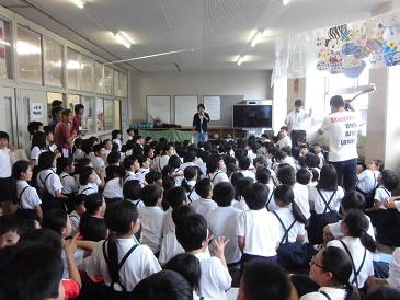 歌手のナオトインティライミさんが大津小学校に来ました。放課後の時間に残っていた子どもたちの前で、歌を3曲披露してくれました。始めは大興奮していた子どもたちでしたが、ナオトインティライミさんが歌い始めると、静かに聞き入っていました。大津小学校を訪ねて頂き、ありがとうございました。