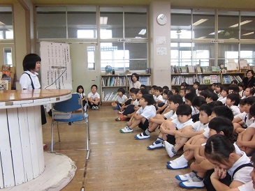 低学年・中学年・高学年から一人ずつ代表が選ばれ、夏休みに大津町童話発表会に参加します。