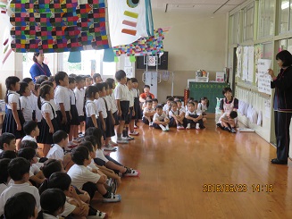 学年ごとに分かれて、校内童話発表会がありました。1年生からは5名の子どもが代表として参加しました。みんなの前での発表は、とても緊張している様子でしたが、どの子も表現豊かに話すことができました。とても素晴らしかったです。