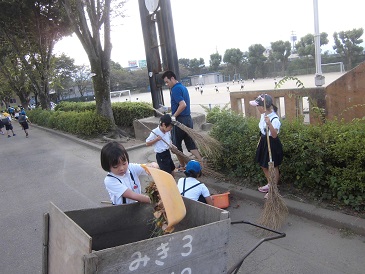 夏休みが明けてから、先生と一緒に落ち葉をはく児童が少しずつ増えてきました。朝からのボランティア活動は気持ちがいいですね。今日からは、5・6年生を中心に運動場の草取りを頑張ってくれました。