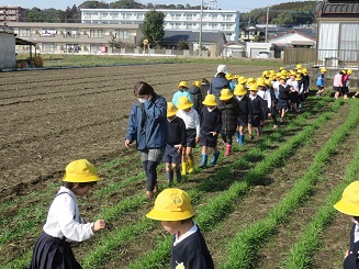 昨年の12月6日に麦の種まきをしてからちょうど2ヶ月が経ち、麦の芽が成長しました。今日は1年生全員で麦踏みをしました。初めての麦ふみという子どもが多く、とても貴重な体験ができました。
