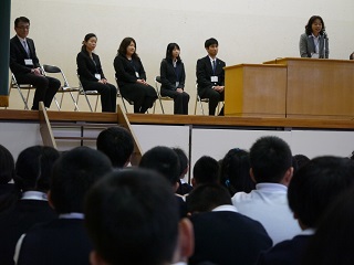 始業式です。校長先生からは普通のことをきちんとやることや、心を合わせることについてのお話がありました。