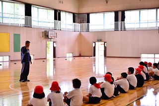 お話もしっかり聞くことができました。校長先生からは「やさしい気持ちをもって誰とでも仲良くすること」「元気のよい返事をしてしっかりお話を聞きましょう」とお話がありました。しっかり聞いていますね!