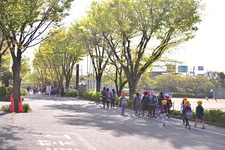 今日は今年度初めて1年生から6年生まで一緒に学校へ登校しました。