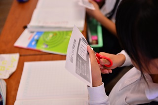 今日は合同な図形の学習をしています。思わず身を乗り出して説明を聞いています。