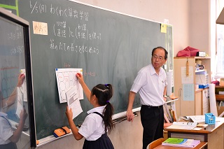 みんなの前で問題の解き方を説明しています。がんばってますね!
