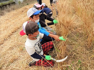 昨年植え、麦踏みなどのお世話をした麦がこんなに大きく育っています。