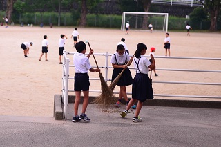 今日は朝から2年生の子どもたちが掃除をしていました。