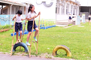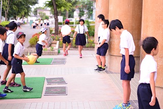 ピンを倒さずにクリアする児童も見られました。とても難しい課題です。
