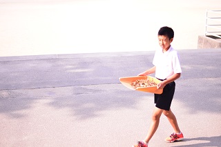 今日の学校の様子です。もくもくとボランティアに励む子どもたちです。