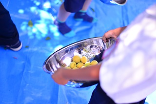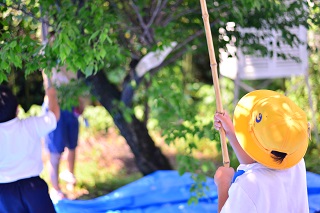 今日は昼休みに特別支援学級の皆さんが梅をもいでいました。