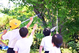 自分たちの育てている野菜のお世話に行く子どもたちの姿が見られました。
