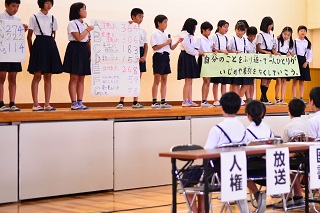 人権スローガンは「自分のことを振り返って一人ひとりがいじめや差別をなくしていこう」でした。