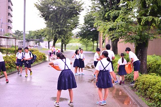今日の学校の様子です。朝のうちにひどい雨が降りましたが、子どもたちがくる頃にはやんでいました。朝のボランティア活動もしっかりできています。
