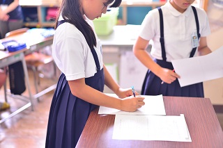 今日は合同な図形の学習をしています。思わず身を乗り出して説明を聞いています。