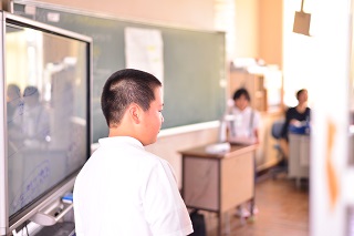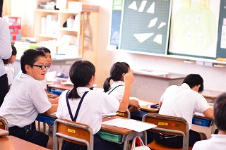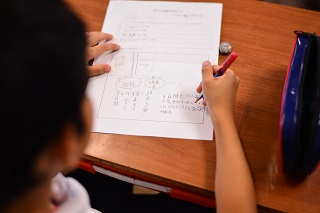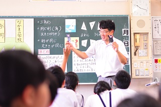 今日は合同な図形の学習をしています。思わず身を乗り出して説明を聞いています。
