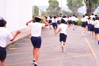 今日は避難訓練がありました。真剣な態度で避難をする姿が見られます。