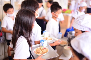 今日の給食は混ぜご飯がとってもおいしかったです。