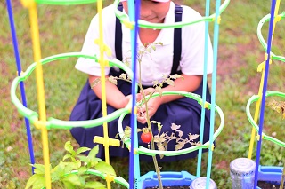 朝から朝顔のお世話をする1年生の姿が見られました。