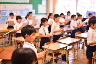 口を大きく開けたり、声の大きさを変えたり、工夫をして読む姿が見られました。