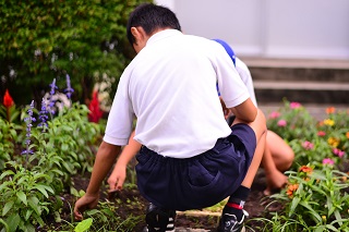 今日の学校の様子です。もくもくとボランティアに励む子どもたちです。