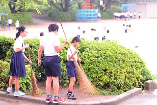 今日の学校の様子です。朝からボランティアの掃除する様子が見られました。