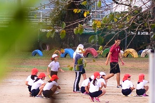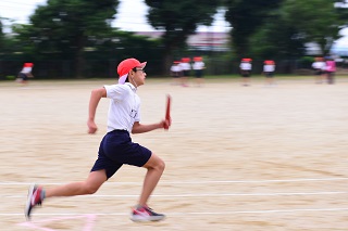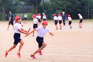 今日も朝から運動場でリレーの練習をする姿が見られます。