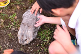 4年生の理科では、ウサギの体の筋肉、骨、関節を触って学習しました。