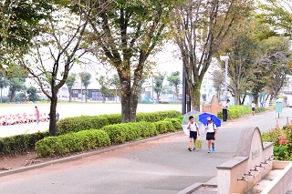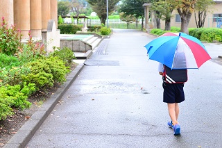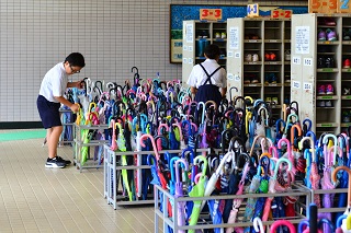委員会活動で、斜めになっている傘をきれいに並べている様子が見られました。