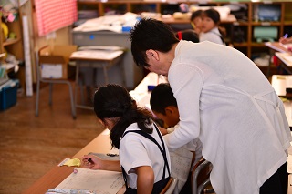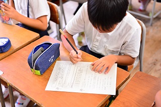 その後は一生懸命問題に取り組んでいます。学習支援ボランティアの方に丸をつけてもらっています。