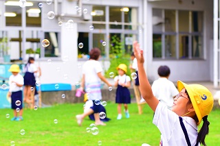 1年生は生活科でシャボン玉の学習をしています。とっても楽しそうできれいですね!
