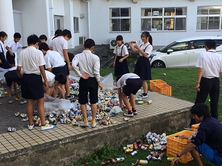 今日の学校の様子です。6年生の卒業プロジェクトの廃品回収の活動が行われていました。