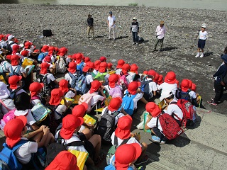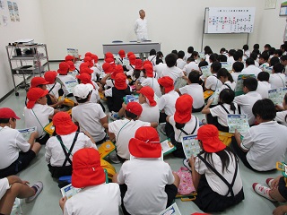 白川地域防災センターの方のお話をしっかり聞いている様子です。