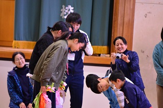また、卒業生から学校へ長机や紙芝居が贈られました。